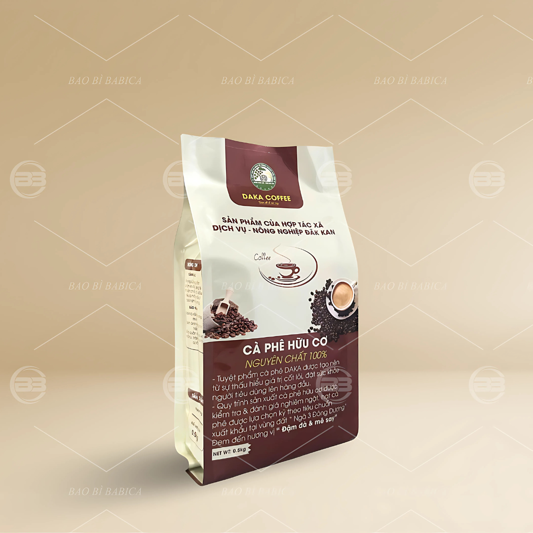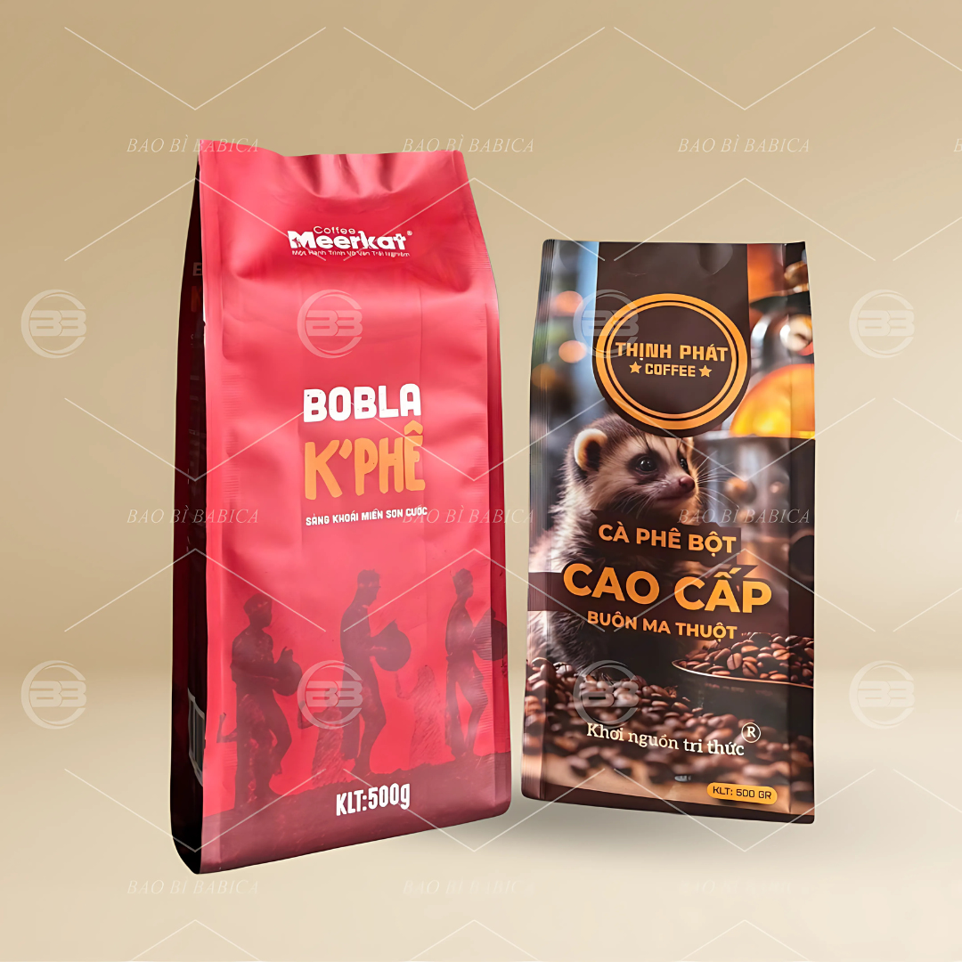 BABICA cung cấp nhiều mẫu túi 4 cạnh nhựa in offset đẹp mắt, phù hợp cho các sản phẩm cà phê. Túi được thiết kế chắc chắn, in ấn sắc nét, màu bền lâu và không lem nhòe. BABICA mang đến giải pháp bao bì vừa thẩm mỹ vừa đảm bảo công năng bảo quản, giúp sản phẩm của doanh nghiệp nổi bật và chuyên nghiệp hơn.